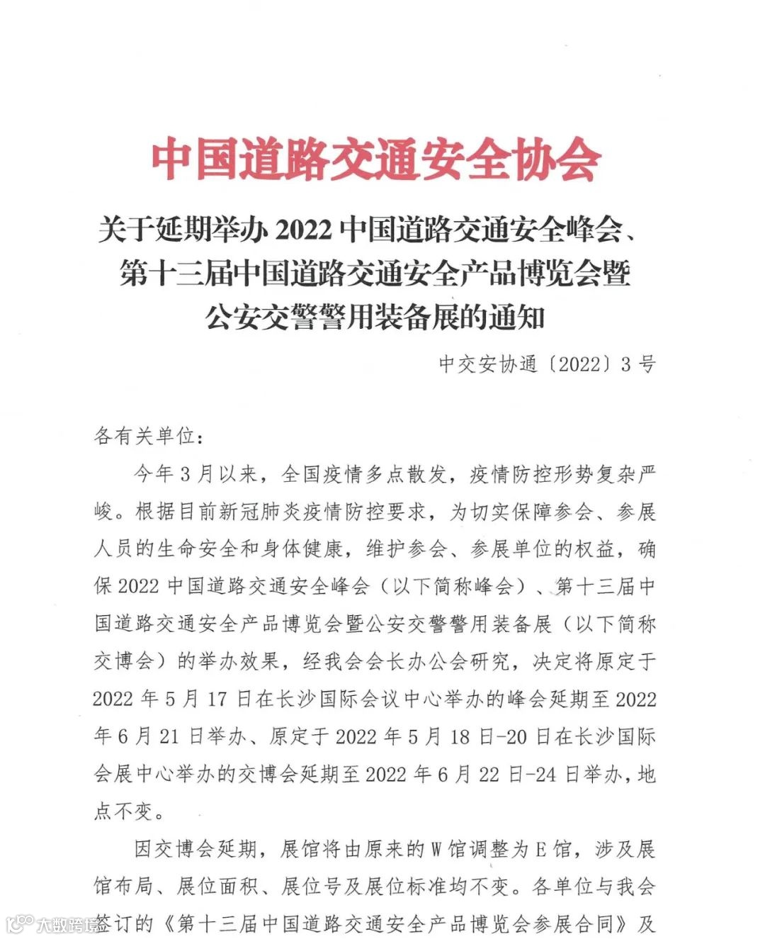 经中华人民共和国商务部批准,由中国道路交通安全协会主办的第十三届中国道路交通安全产品博览会(以下简称交博会)原定于2022年5月18日至20日在湖南长沙国际会展中心举办,因疫情原因延期至2022年6月22-6月24日举办。届时诚道科技将在E3号馆3T57展位设立专业的产品体验区,诚邀您的莅临指导。