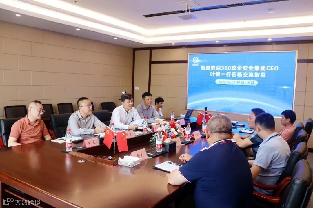 2022年7月7日下午,360集团首席运营官兼360政企安全集团首席执行官叶健一行莅临云上(江西)密码服务科技有限公司(以下简称“云上密码”)参观交流。云上密码公司总经理姜林海等热情接待并陪同交流。