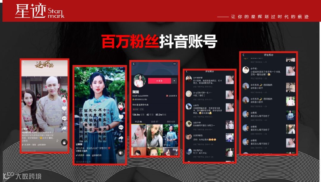 在这个领域里面我一直是实战,我是战士,在2017年底我发现整个的风口红利和趋势的时候,我就在每个社交媒体平台大概玩两到三个月,从底层逻辑到粉丝运营到整个运营规则,基本上三个月我的粉丝量都会破百万,因为我一直相信一句话:只有实战才能指导实战,这是我们的抖音,及旗下的机构打造的一些案例。从去年年底到今年年初,我开始整个布局淘宝直播、快手、抖音等几个全域营销里面重量级的生态机构,包括杭州的淘宝直播的孵化基地、广州的快手和抖音孵化基地,我们自己孵化出来的网红已经排名TOP3。