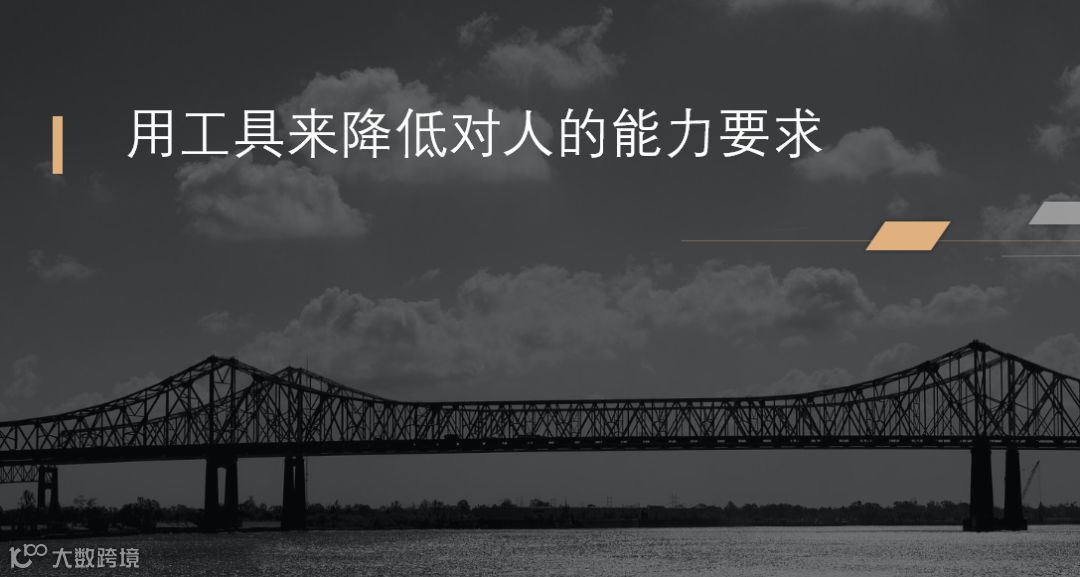 最后,我分享一个小的干货。因为我们的从业人群自身的文化水平不是特别高,各方面能力、意识也没有觉醒,所以我想分享给大家的是,用工具来降低对人的能力要求。你不需要它特别强,但是你一定要想的特别清楚,用架构、工具、课程和系统来帮助我们完成工作和提升业绩。