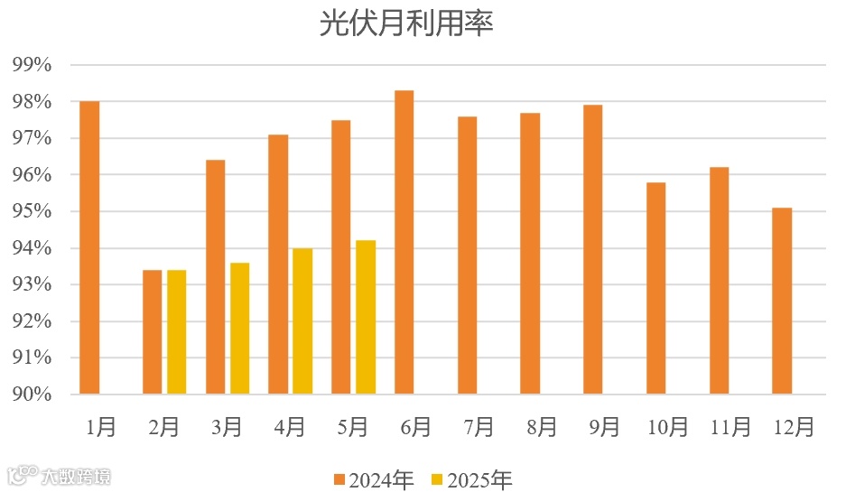 光伏:5月利用率为94.2%,1~5月利用率为94%。