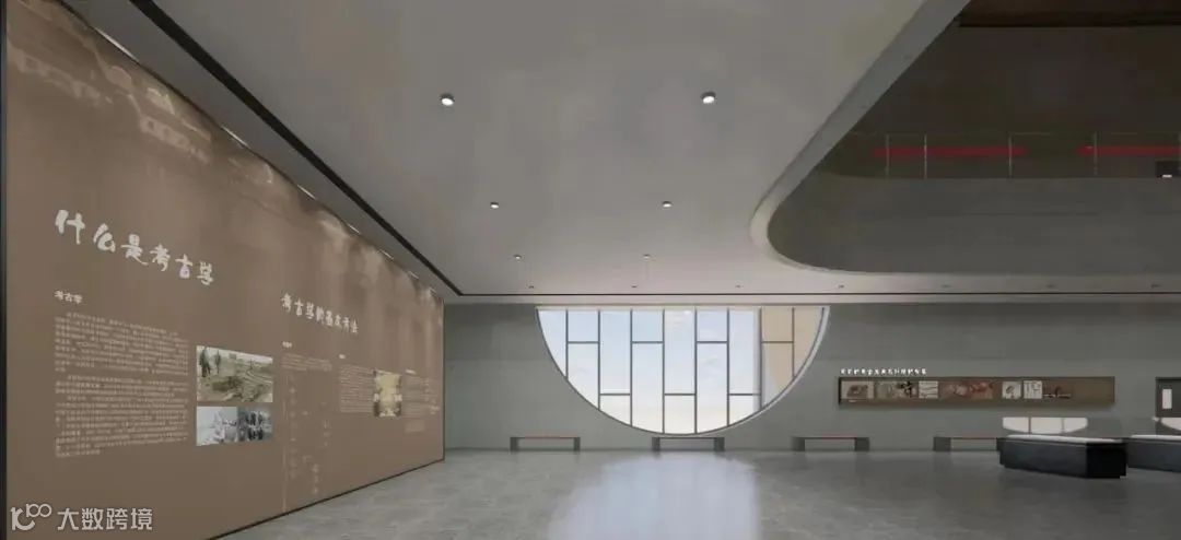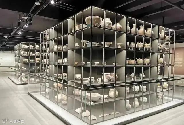透明玻璃房中海量摆放的陶器和石器标本营造一种田野考古氛围,仿佛置身于考古现场。