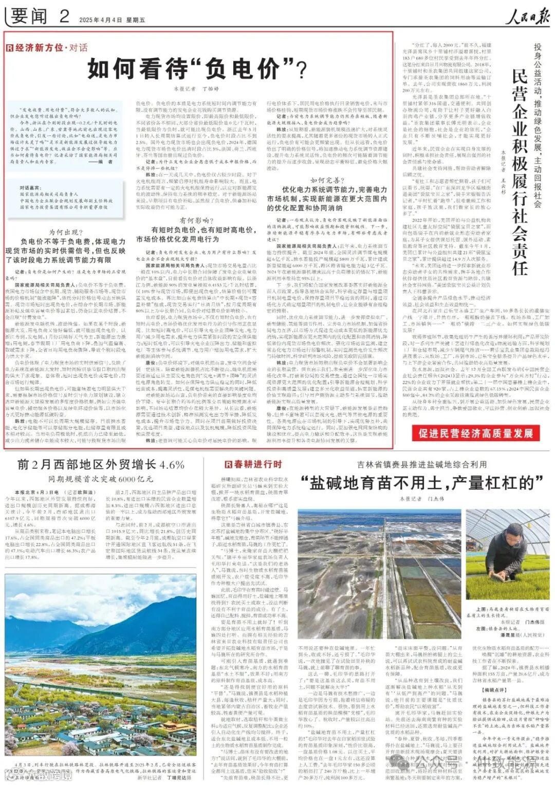 国家能源局相关司局负责人:负电价不等于负电费。我国电力市场包含中长期、现货、辅助服务市场等,现货市场的价格机制“能涨能降”,依托分时价格信号动态反映供需。现货市场短时出现负电价,在综合中长期市场、新能源补贴及煤电容量电价等因素后,仍会以正电价结算,不会出现“付费发电”。