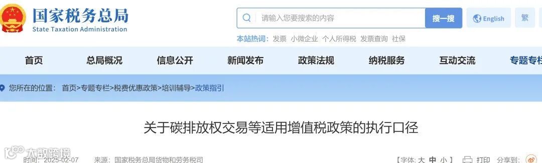 2月7日,国家税务总局货物和劳务税司就碳排放权交易等适用增值税政策的执行口径进行明确称,纳税人发生碳排放权交易、核证自愿减排量交易,应按销售“无形资产—其他权益性无形资产—配额”计算缴纳增值税,适用6%税率。