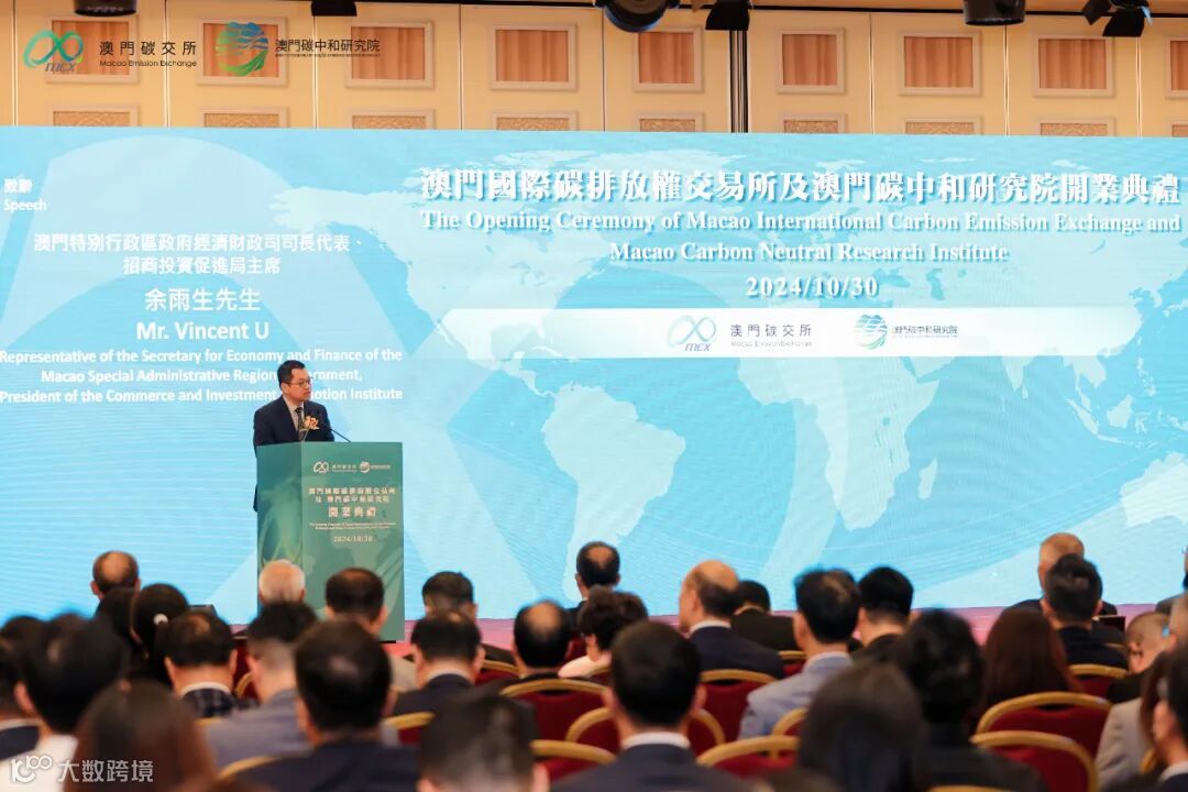 10月30日下午,澳门国际碳排放权交易所(简称“澳碳所”)暨澳门碳中和研究院(简称“碳研院”)开业典礼在澳门举行。
