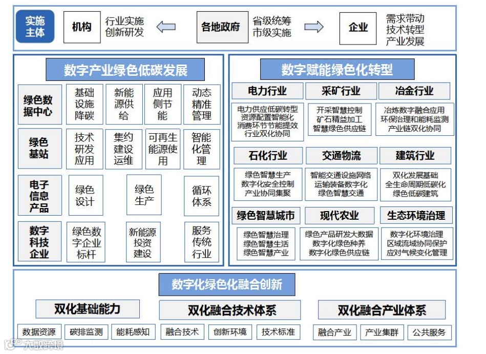 按照“323”总体框架进行布局,明确了各地区政府和相关部门,行业协会、高校和科研院所,相关行业企业等双化协同三类实施主体,为各类主体推进双化协同工作提供指引和参考;明确了推动数字产业绿色低碳发展、加快数字技术赋能行业绿色化转型等双化协同两大发力方向;明确了数字化绿色化基础能力、数字化绿色化融合技术体系、数字化绿色化融合产业体系等双化协同融合创新三方面布局。
