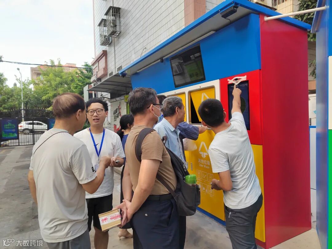 坐落于万景花园小区北2门的“智慧垃圾箱”,小区居民只要在投放时间段正确投放分好类的垃圾,箱体内的智能系统就会进行称重、计算和转化,实现精细化分类。