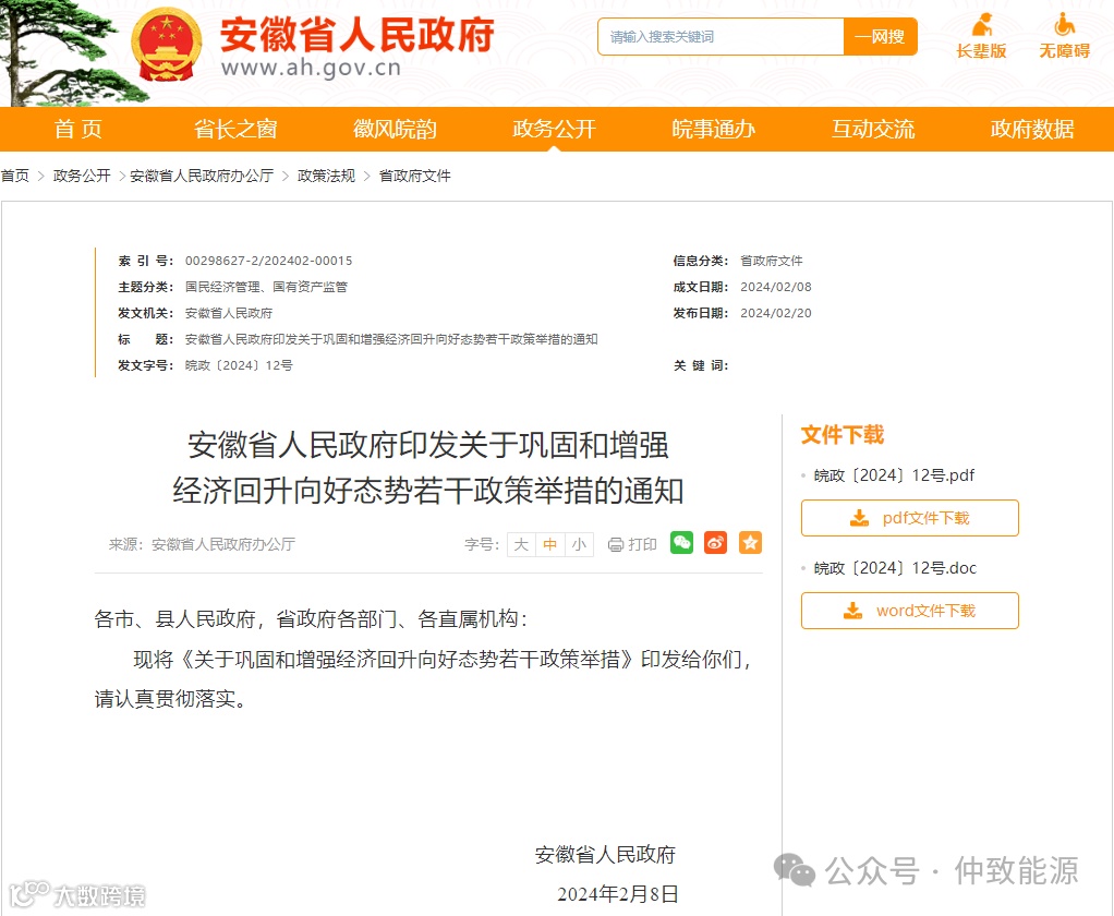 2月20日,安徽省人民政府印发《关于巩固和增强经济回升向好态势若干政策举措的通知》。文件提出:省财政安排专项资金,支持打造先进光伏和新型储能产业集群建设。统筹省制造业数字化转型等政策资金,给予新认定的国家级、世界级先进制造业集群1000万元、省级先进制造业集群500万元补助,用于支持集群企业产业科技创新实体项目、公共服务平台建设等。