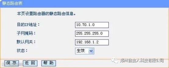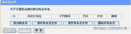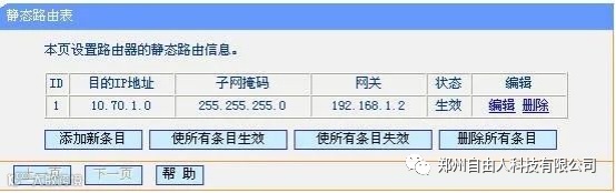 “添加新条目”按钮,在静态路由表中填写相应的参数。