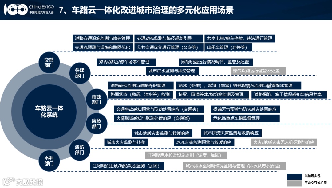除了交管部门,包括建设、市政管理、消防、应急等,这些部门在日常当中,如果一个城市提供了有大量感知又能够实时传输的毅中系统,甚至形成一种专网,保障通信的可靠性,保障感知的及时性,这套系统完全可以参与到城市治理管理已有的系统中,增加对城市治理的赋能,这些应用正在北京、深圳等城市中探索,但是我们希望这些城市能够围绕这个领域做得更深、做得更宽,可以增加车路云未来的应用空间。