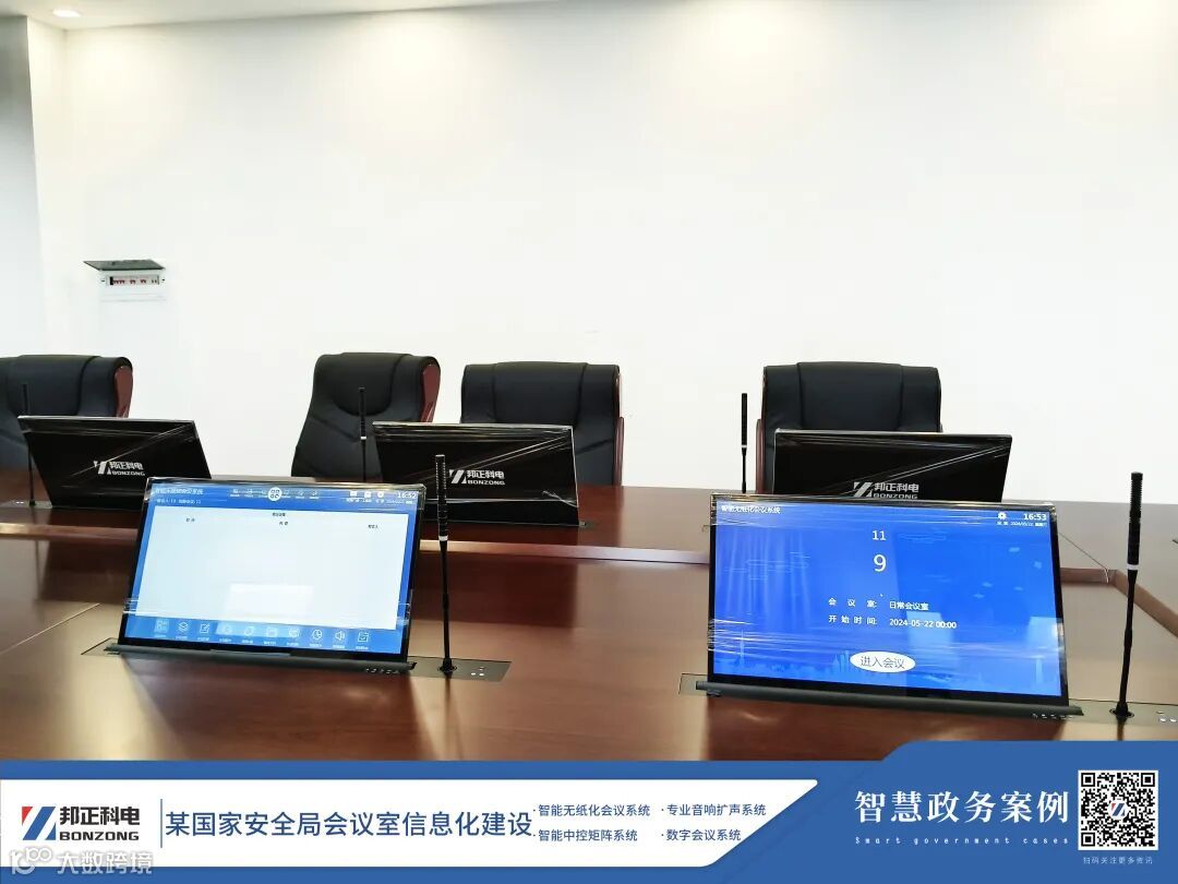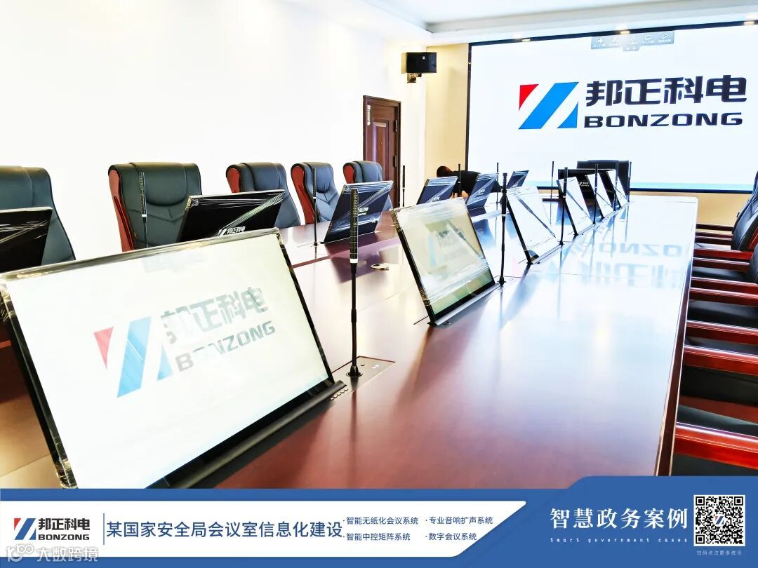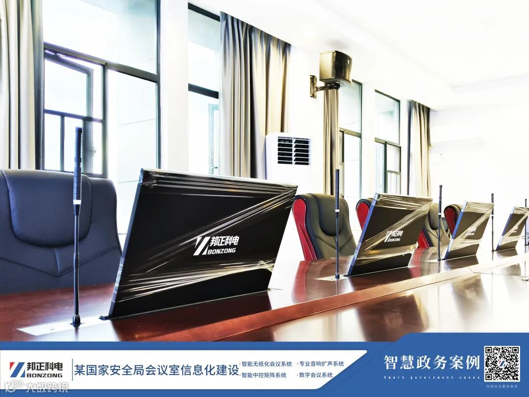 某国家安全局致力于打造安全、稳定、高效的政务会议系统。随着政务规模扩大和智能化升级需求,传统的会议办公模式效率低下,室内声光环境复杂,跨部门协同效率不足等挑战。BONZONG邦正科电基于该单位实际需求,设计了智能无纸化会议系统、智能中控矩阵系统、专业音响扩声系统、数字会议系统智能化升级。