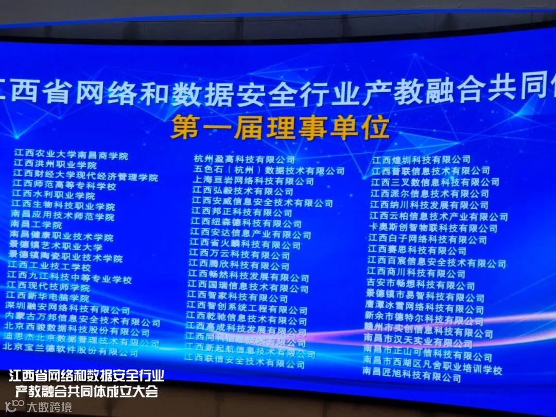 江西邦正科技有限公司作为第一届理事单位参加成立大会议,见证了产教融合共同体的成立时刻!愿我省网络和数据安全行业不断繁荣发展!