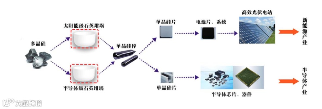 石英坩埚产品质量直接影响直拉单晶硅的品质和成本,而拉晶工艺升级则对石英坩埚纯度、寿命和尺寸提出了更高地要求,进一步激发高端石英坩埚需求。