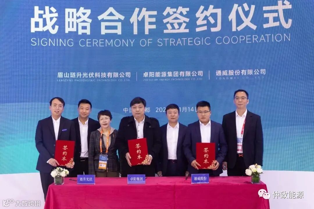 琏升光伏在展会现场首先与通威股份、卓阳能源签署了三方合作协议。通威股份是世界500强,全球光伏巨头;卓阳能源是致力于能源结构转型的全球化企业。琏升光伏携手通威、卓阳,势必为行业发展带来更多期待。