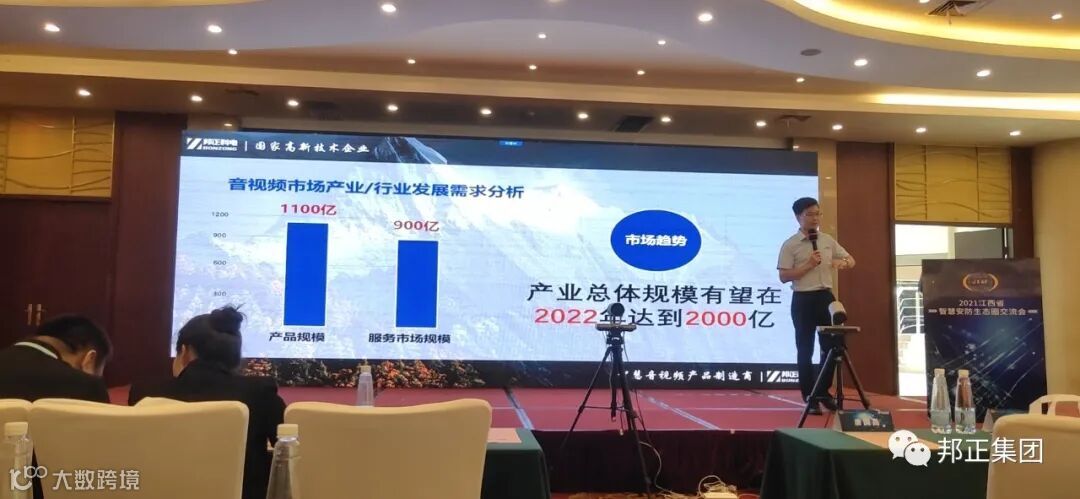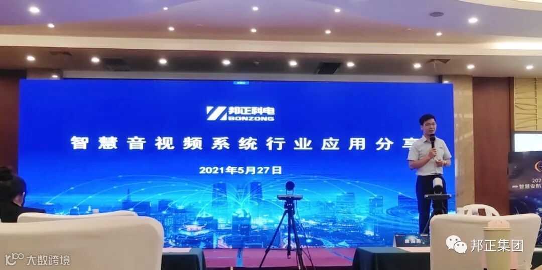 会议中,江西邦正科技有限公司总经理林孺宏先生对智慧音视频系统产品行业进行了应用市场分析和案例分享。BONZONG(邦正科电)是一家致力于智慧音视频系统产品研发、生产销售于一体的智慧音视频产品制造商。经过多年努力,BONZONG(邦正)品牌产品已广泛应用于政府、军队、人防、公检法、教育、医疗、金融、交通、酒店、大型集团企业等多个领域,在行业拥有较高的知名度和美誉度,并已形成集产、学、研综合为一体的国家高新技术企业。