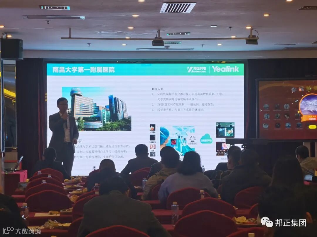 随后,BONZONG(邦正科电)市场总监曹家荣先生对企业产品作详细介绍,亿联视频会议产品全面自主研发、生产、销售于一体。在2020年以来,由于国外芯片的供给中断,造成国内很多行业受挫,亿联作为一家自主研发制造商,依然能够在时局变动下稳住自己的脚跟。如今,亿联远程智慧医疗应用甚广,解决了医疗水平配备不均的缺陷。教育行业实现远程教学,让贫困山区的孩子也有机会看到大山外的世界,和其他孩子一样接受更高水平的教育教学。