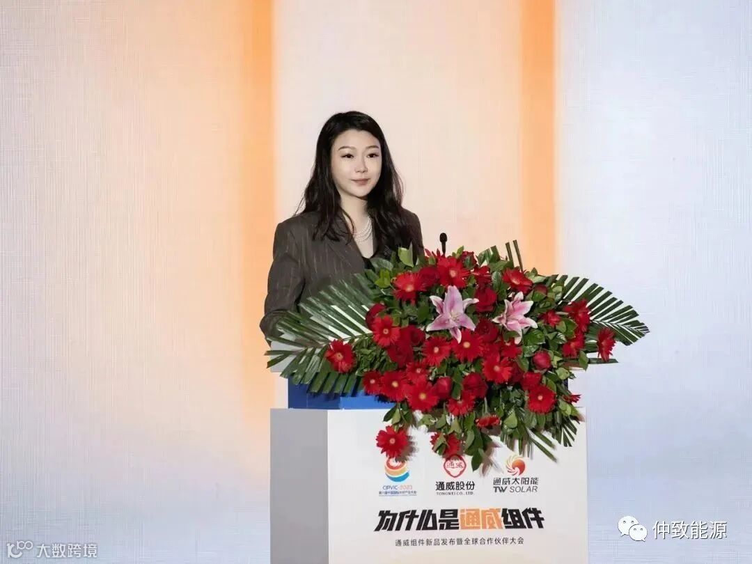 通威股份光伏商务部组件全球营销总经理邱新在致辞中首先对莅临现场的领导嘉宾致以衷心的感谢,并表示,今年是通威入局组件的第一个自然年,这一年的发展离不开广大伙伴的支持,也离不开这个沉淀定力的时代。时代为何选择通威?选择通威就是选择高效、选择诚信和选择可靠。