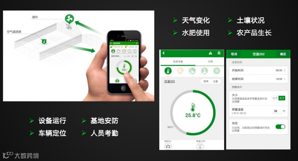 ,涉及在线监测、精准控制、科学决策、智能管理,不仅体现在农产品生产种植过程,