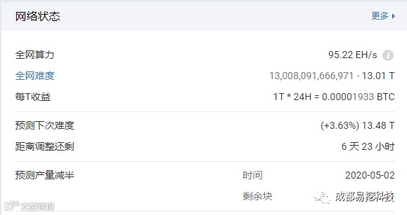 根据btc.com数据显示,自今年以来,比特币挖矿全网算力及难度逐渐飙升。五月以来,挖矿难度更是从6.7T涨到当前的13.01T,难度基本翻了一倍。意味着在相同算力投入之下,目前的比特币价格需要达到5月份初时的两倍,才能让当前投入的算力与五月初时投入的算力所挖得的比特币数量相持平。