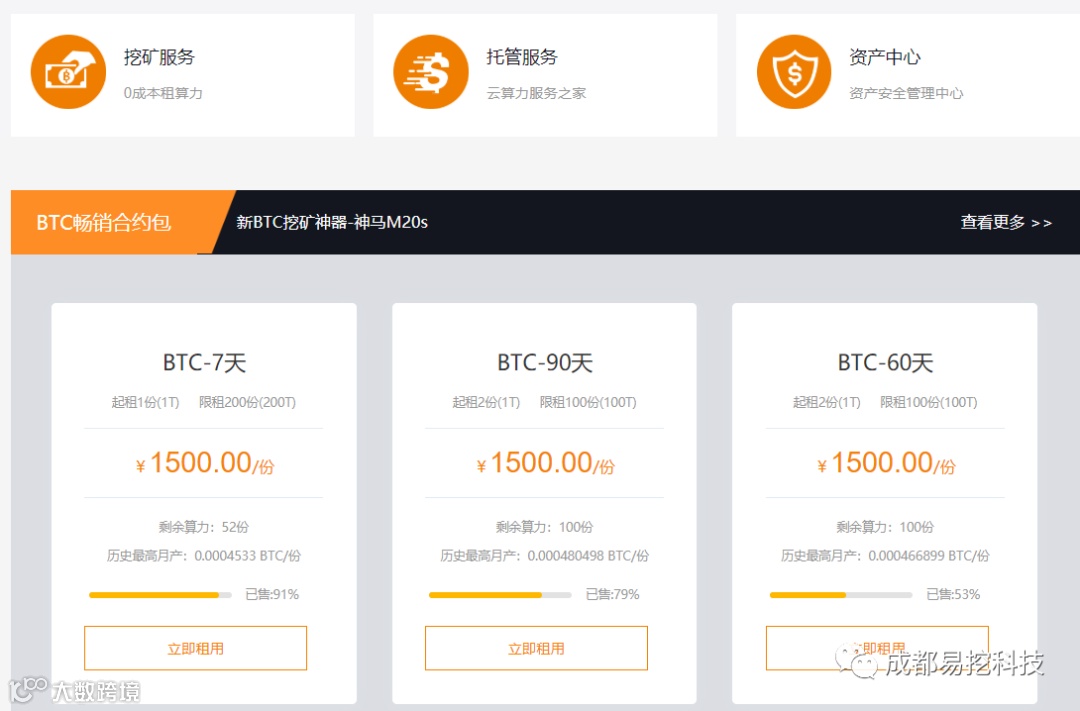 对于普通的个人挖矿用户来说,挖矿有较高的进入门槛。挖矿需要购买实体矿机,会受到电价,场地,温度,噪音,维护等等客观因素的影响,这些挖矿门槛需要一定的条件和知识储备,因此云算力业务登场逐渐受到青睐。云算力是一个快速增长的市场,经历数字货币市场熊市牛市不断变化的背景下,屯币总是没错的,云算力挖矿作为一种便捷高效的新型挖矿模式,会有越来越多矿工的选择加入。