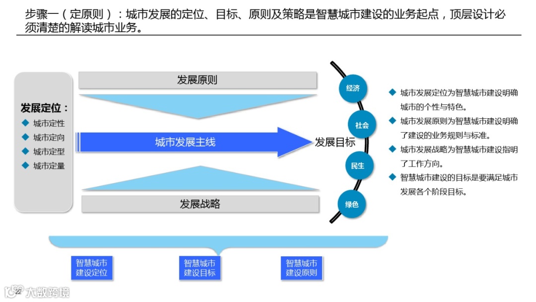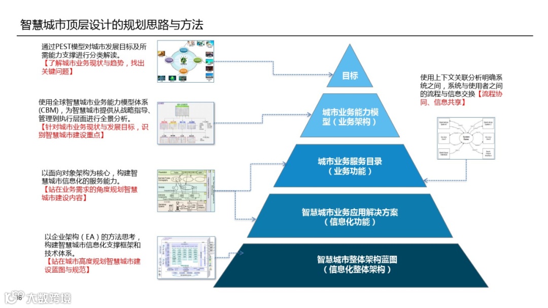 下面这份PPT材料主要分为四个部分,第一部分主要介绍什么是智慧城市相关概念内涵,第二部分是阐述为什么要进行智慧城市顶层设计,第三部分讲解智慧城市顶层设计怎么做,最后从组织保障、管理保障、运营机制等方面详细说明了智慧城市顶层设计如何落地。
