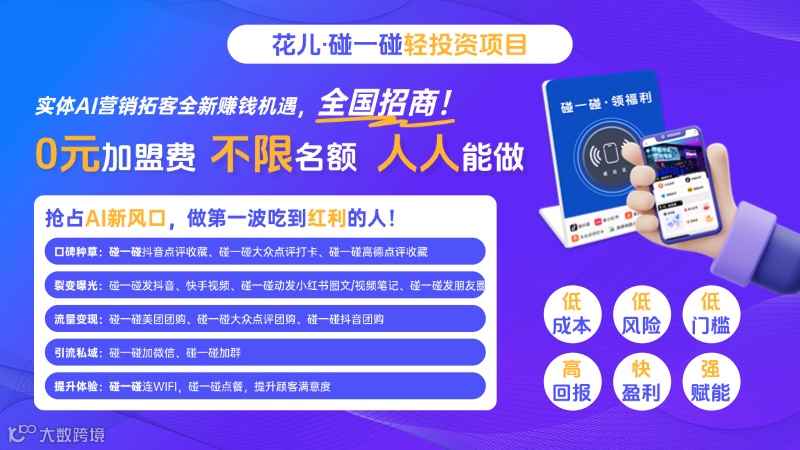 因此,【花儿·碰一碰】项目足以打消部分老板害怕商家不接受的顾虑,全国上百个城市已经在逐渐普及渗透了,全新的NFC碰一碰蓝海市场已经打开,犹豫就会错失良机,马上行动才能有大收益!