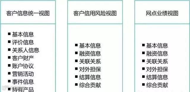 数据资产视图。在建立了数据仓库之后,需要建立统一的分析和可视化平台,解决数据在哪里,数据怎么用的问题。一个典型的应用是建立全行统一客户视图,包含客户信息统一视图、客户信息风险视图和网点业绩视图。