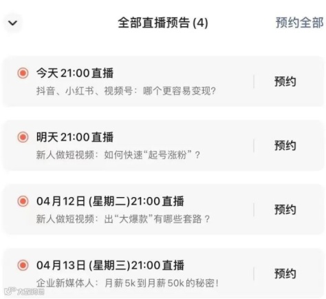 在直播即将结束时,可以通过直播间链接功能配合已经创建过的直播计划,推出下一场直播预约;锁定当前直播间粉丝,为下一场直播创建基础用户。