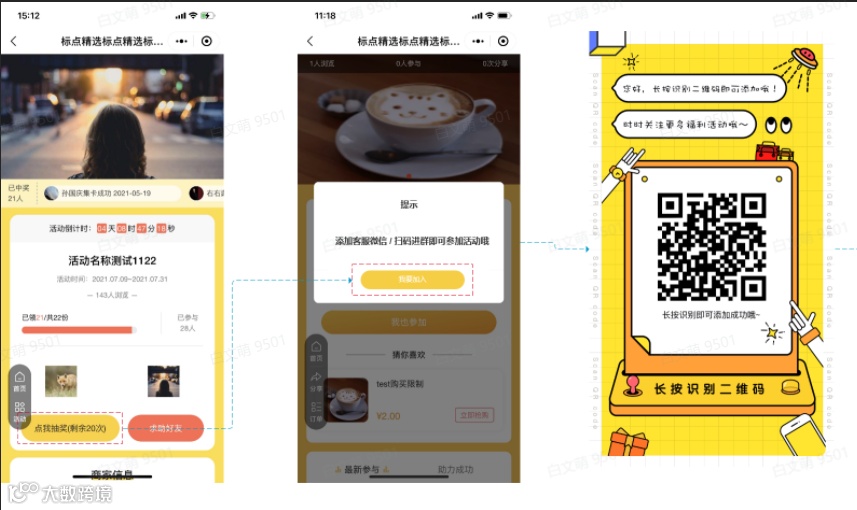 ◆支持营销活动关注企业微信长按识别二维码(九宫格、砍价、福袋);