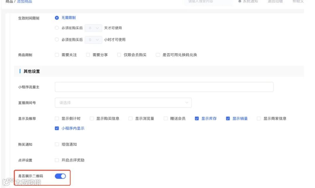 增加是否展示核销二维码开关