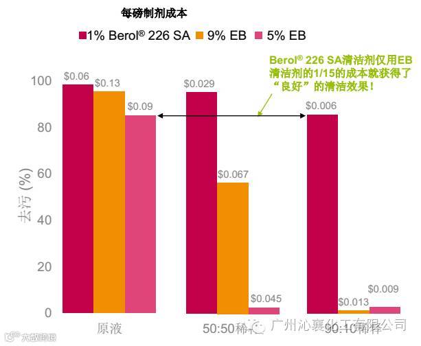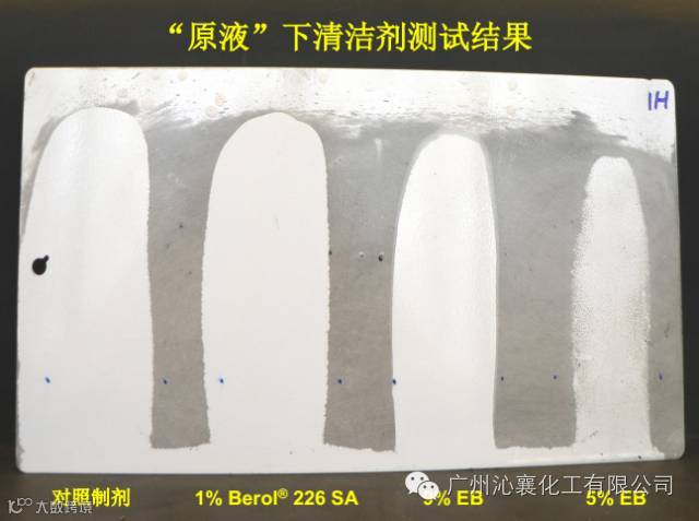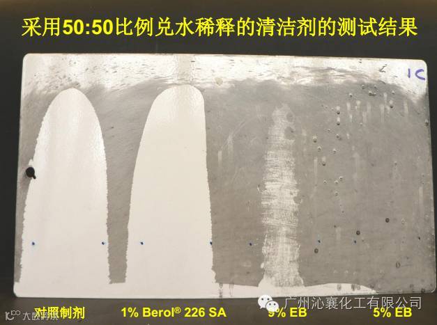 采用90:10稀释比例的Berol 226能够具有与5%EB相同的清洁性能