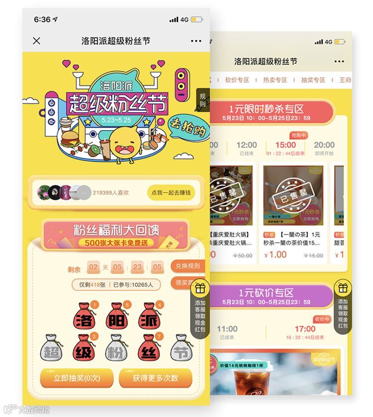这就是我们在做的洛阳派“超级粉丝节”,该专题集福袋、砍价、抽奖、秒杀于一体,一个页面满足多个营销场景,非常适合平台造节,同时支持快速锚点定位,让用户在多sku的情况下,第一时间找到商品,哪怕专题内容再多也不必担心啦~