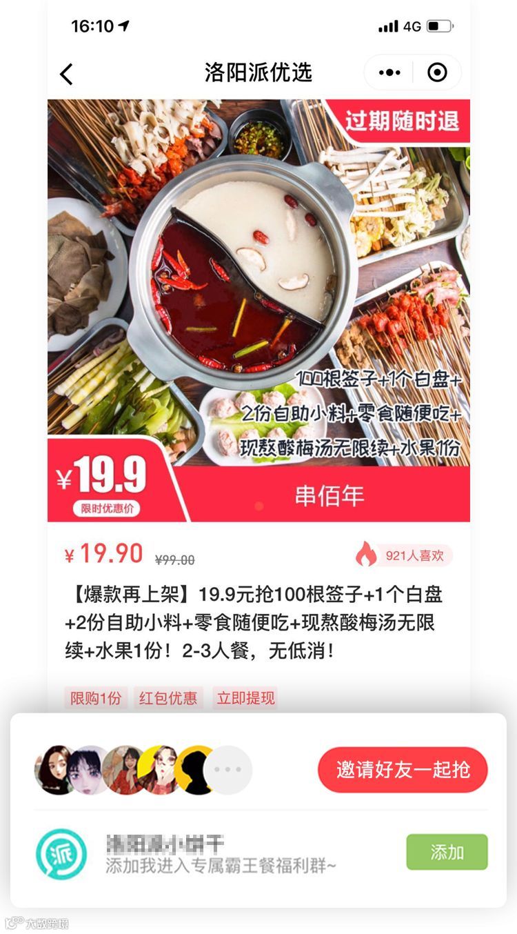 抢眼的赚取佣金字眼,刺激分销人的“赚钱欲”,第一屏黄金地段的引导展示,直观的文案,手把手引导分销人将商品分享至好友,让小程序更好的展开分销裂变。