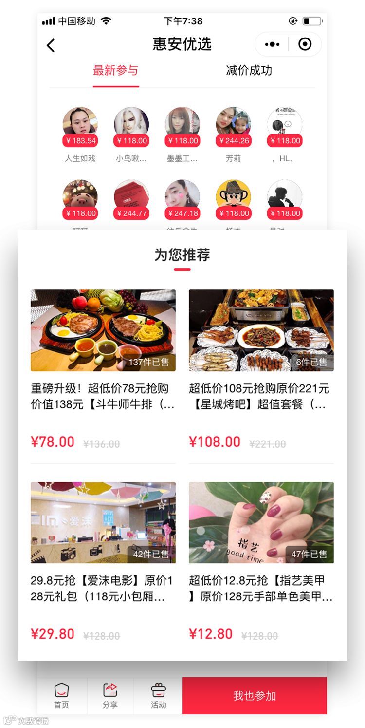 小程序砍价活动增加底部推荐商品展示