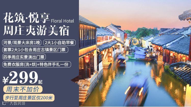 搜索关键词:299元起享花筑·悦享周庄夷游美宿,夜游周庄古镇!河景/观景房+2大1小自助早餐+夜游周庄古镇+欢迎水果、晚安甜品+免费衣服房(洗+烘)+特色伴手礼一份超长有效期!