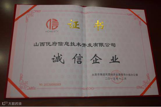 山西优府信息技术开发有限公司获得“诚信企业”认定