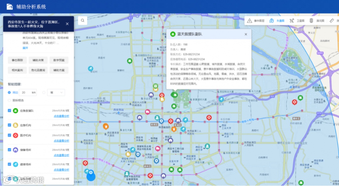 辅助分析系统是一个在应急调度环节辅助领导指挥调度的全面性工具,在应对突发事件中发挥着至关重要的作用。通过该系统,用户可以快速了解事件的来龙去脉,明确各处置环节的责任人及操作要求。同时,系统还能智能匹配周边应急资源,为快速响应提供有力支持。通过大数据技术对相关事件进行智能分析和提醒,对类似事件进行深度挖掘,为决策者提供数据支撑。总之,辅助分析系统以其强大的功能和出色的性能,极大地提升了应急响应的速度和效果。
