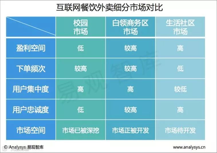 经过外卖O2O多年渗透,校园市场被深度挖掘,趋于饱和。校园市场盈利空间低、用户忠诚度低且易受补贴影响,白领商务市场,正成为外卖平台新的争夺热点。