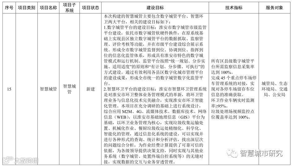 查阅了下,淮安市的情况,对照了下智慧城市建设内容后,不禁为淮安市惋惜: