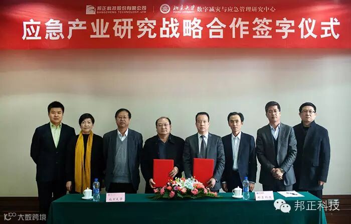 2016年元月10日上午,邦正科技股份有限公司与北京大学数字减灾与应急管理中心“应急产业研究战略合作框架协议书”签字仪式在西安高新区中兴和泰酒店成功举行。国际应急管理学会副主席暨中国国家地震救援组组长曲国胜、北京大学数字减灾与应急管理中心杨文龙、陕西省紧急救援协会会长谢瑷泽、邦正科技股份有限公司董事长、总经理赵刚志、常务副总田亚东、副总经理李荣国等出席签字仪式。此项协议的签订标志着双方强强联手、优势互补,在应急产业信息化领域展开深度合作的战略步伐迈出了坚实的一步。