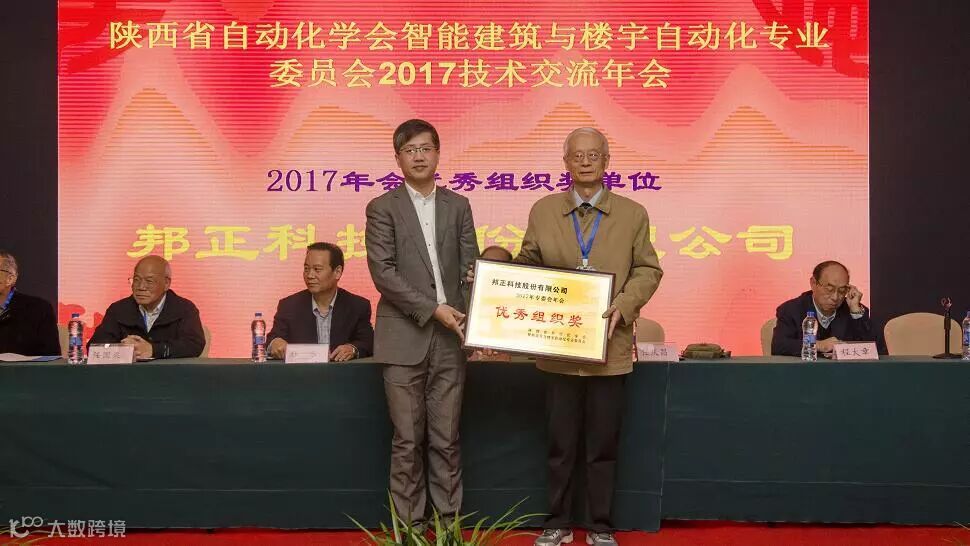 西安建筑科技大学博士生导师、教授、陕西省自动化学会智能建筑与楼宇自动化专业委员会主任任庆昌教授向邦正科技股份有限公司授予“2017年度优秀组织奖”,并对邦正科技赞助承办本次大会表示感谢。