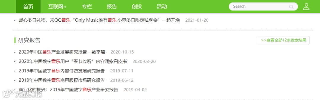 首先要放眼整个行业的市场动向,这里指的不是知识付费行业,而是店铺内容的细分化领域,比如音乐教学店铺,利用数据检索“音乐”“教育”等关键词,掌握行业的相关最新报告,洞悉头部机构的市场行为。