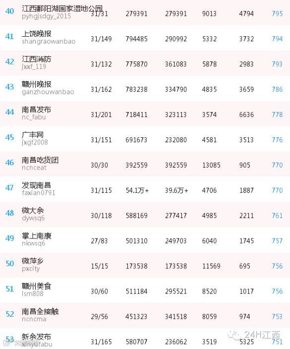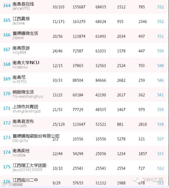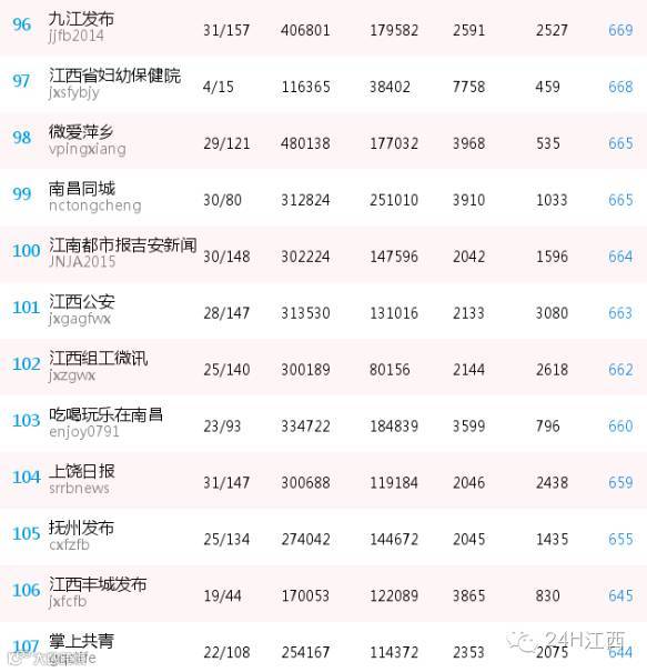 江西地区微信公号传播影响力