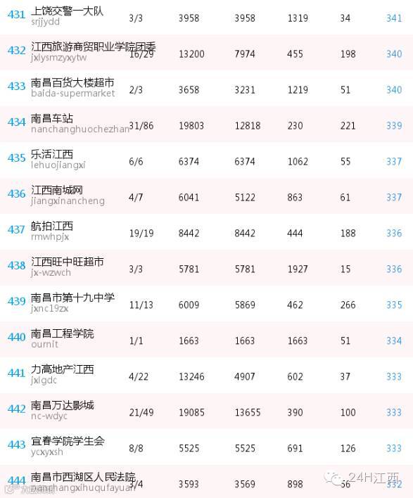 医疗类微信公众号中,南昌大学第二附属医院进入前40名,江西中医院、南昌大学第一附属医院、江西妇幼保健院冲进百强。