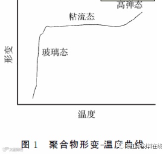 粉末涂料树脂的Tg决定着粉末涂料的流动性能与储存稳定性。Tg是无定型聚合物从玻璃态转变为高弹态的转变温度,高聚物力学三状态与温度转变的关系[1]见图1。