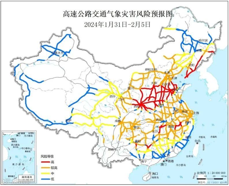 本次过程正逢春运返乡高峰期,雨雪冰冻天气将对春运出行产生较重影响,雨雪天气道路积雪、结冰和低能见度易导致高速公路形成交通拥堵或事故。▼