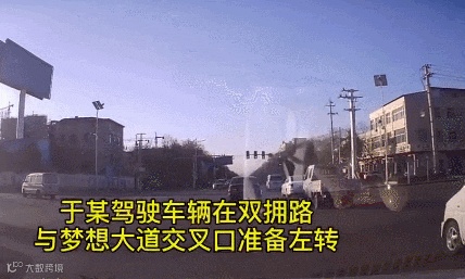 ▲因阳光刺眼,机动车在左转时将斑马线上的行人撞倒。