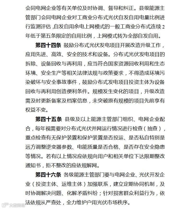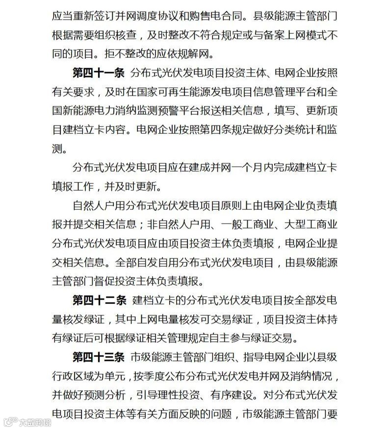 文件明确,各市、县级能源主管部门应当会同有关部门积极推进辖区内分布式光伏发电开发利用,优先支持在绿色区域开发建设分布式光伏;对于确需接入黄色区域的分布式光伏,应开展专项分析,落实消纳和接入条件后,再行开发建设;在电网承载能力未得到有效改善前,暂缓红色区域新增分布式光伏接入。