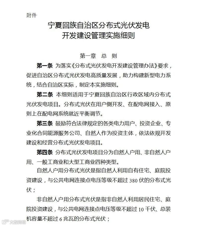 附件:宁夏回族自治区分布式光伏发电开发建设管理实施细则