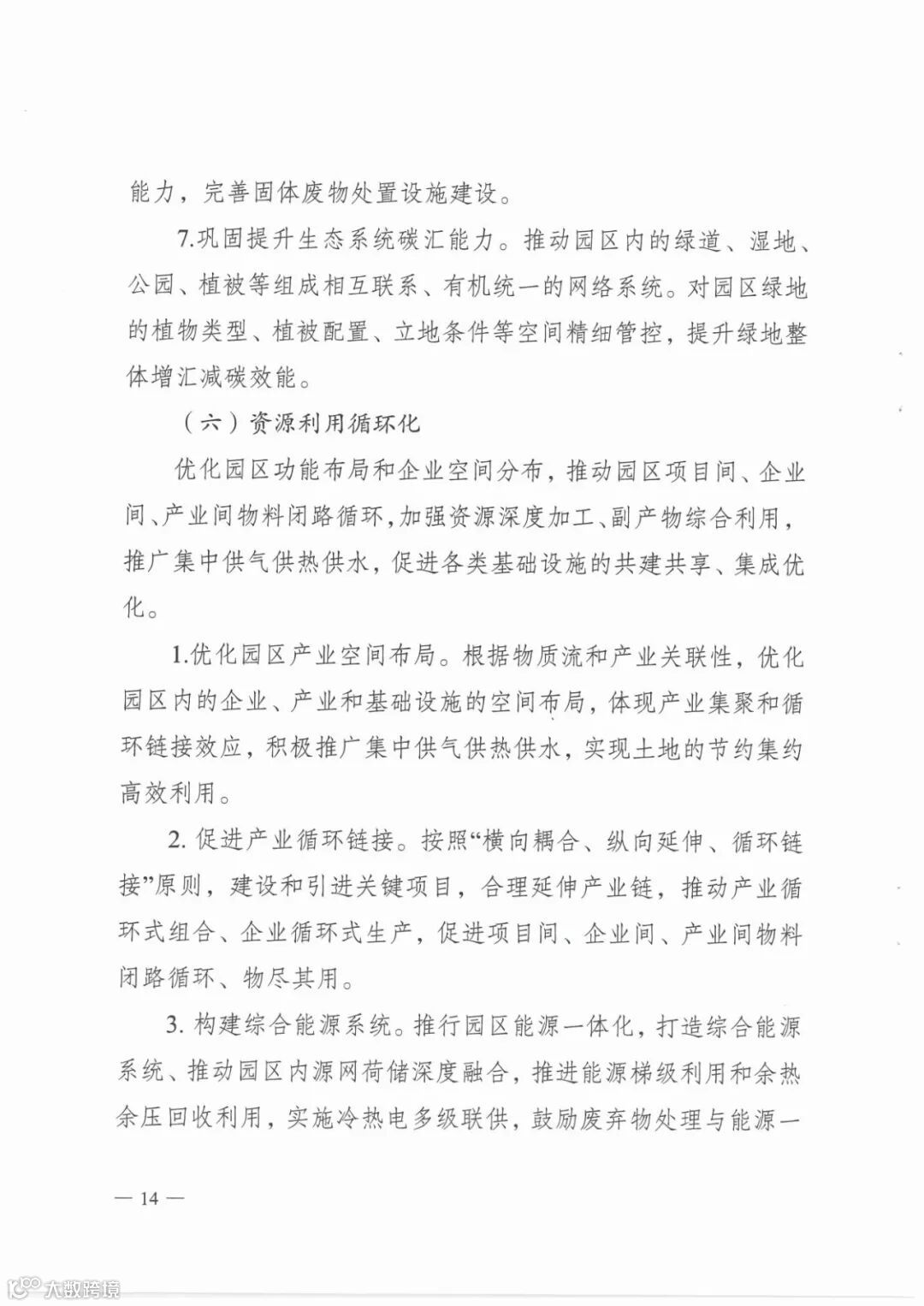 强调园区运营管理数智化,加强低碳组织管理,开展园区和企业碳管理能力体系建设,推行企业碳排放核查和产品碳足迹管理,积极开展碳监测、碳资产、碳信用、碳普惠、碳金融和环境信息披露工作。